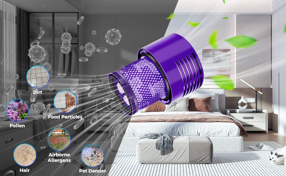 - 【Purification Efficace De L'Air】 Ce Accessoires Compatible Avec Dyson V10 Est Fabriqué À Partir De Matériaux Respectueux De L'Environnement À Haute Résistance, Qui Peuvent Capturer Et Filtrer De Minuscules Particules Telles Que La Poussière, Le Pollen, Les Cheveux, Les Spores De Moisissures, Etc.Pour Empêcher Les Allergènes De Circuler Dans L'Air De Votre Ma