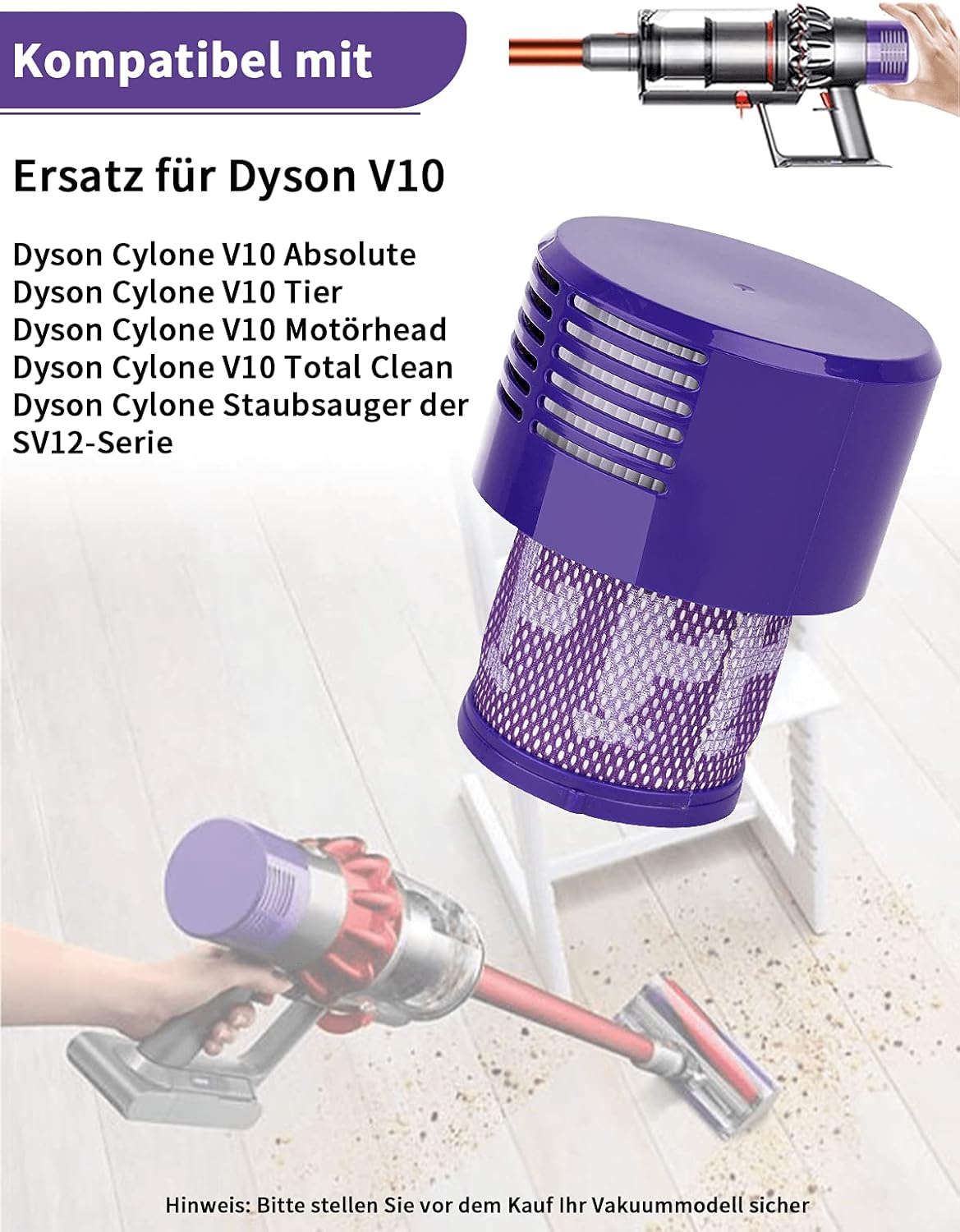 - 【Remplacement Pratique Et Rapide】 Le Absolute Filtre Compatible Avec Dyson V10 Est Facile À Installer Et Convient À Vos Aspirateurs À Main Et Sans Fil, Il Vous Suffit De Retirer L'Ancien Filtre Et D'Installer Le Nouveau Filtre.